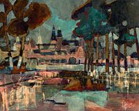 Beautiful impressionistic oil painting of the bridge and the island of Robinson in Visé, Belgium. Size 500 x 400 mm. Painted on hardboard in 2018. For sale. www.briex.eu