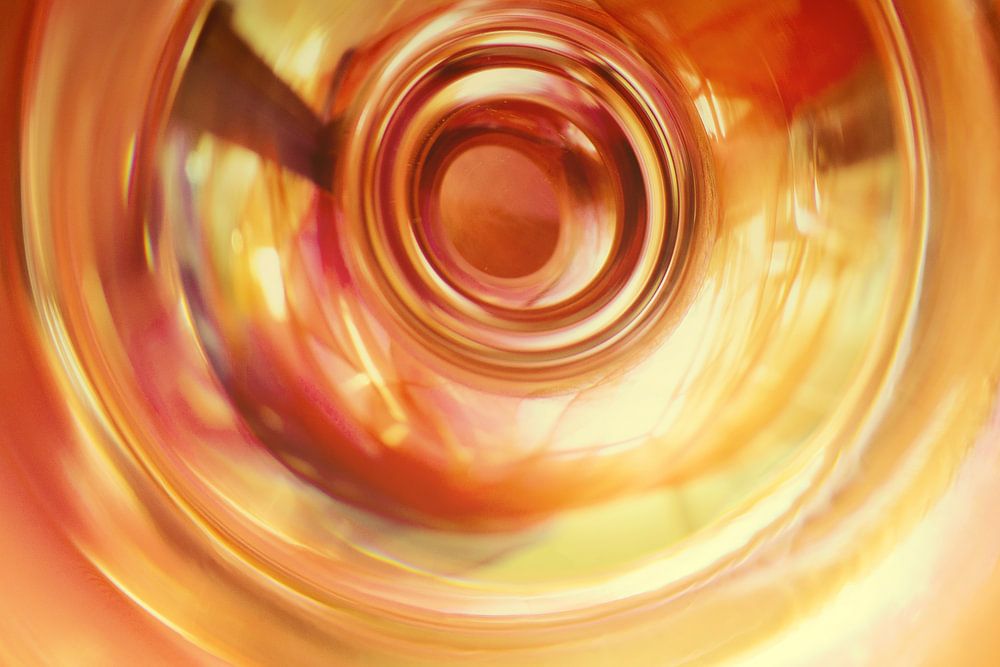 A closeup shot of a glass with coloured light on it. With a macro lens, you get to see the most beautiful things and the abstraction keeps you looking at it. You seem to be sucked into the image. I did adjust the colours a bit.