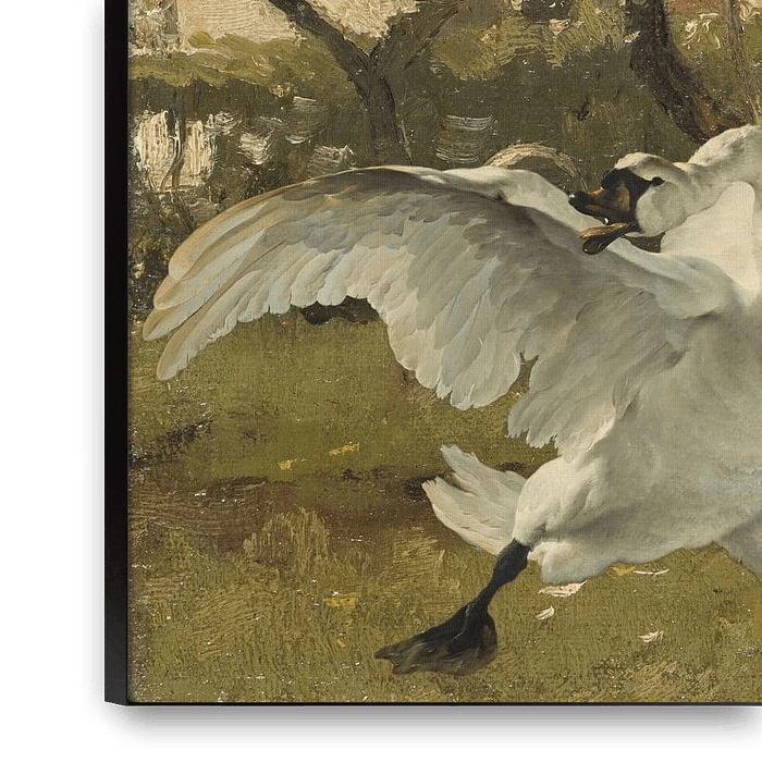 Edited reproductions of the paintings 'Blossoming tree in an orchard' by Geo Poggenbeek & 'The threatened swan' by Jan Asselijn.