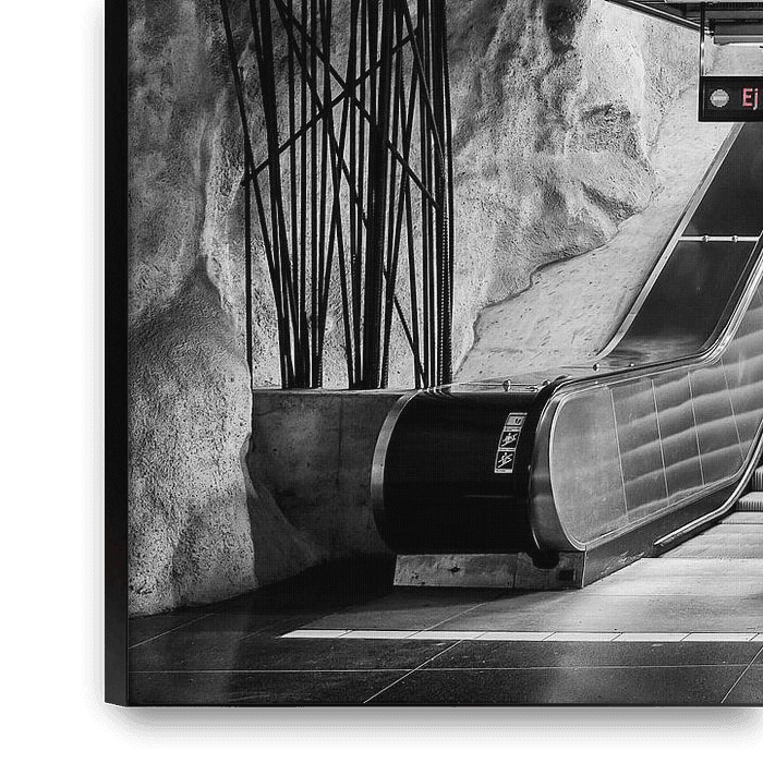 Escalators in the artistically designed "Radhuset" station of the underground (Tunnelbana) in Stockholm, Sweden