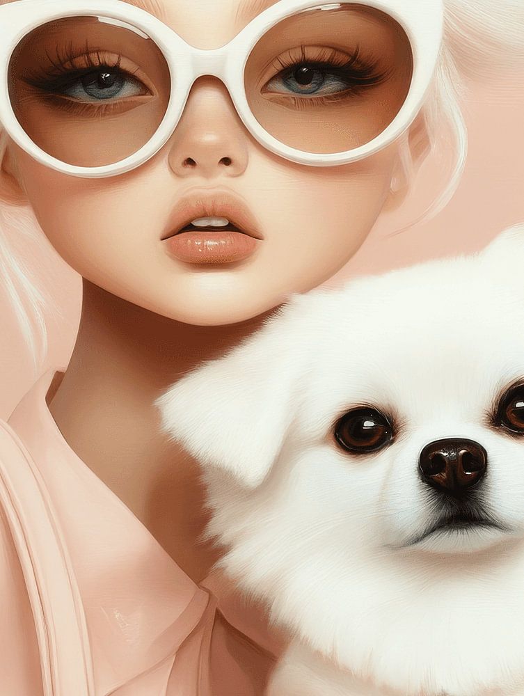 In this artwork, we see an elegant girl, complete with big glasses and a look that says: "I'm ready for a fashion show... or a walk in the park." At her side is her stylish four-legged friend, who looks like he values accessories as much as his owner. Together they form the ultimate power couple, ready to steal hearts and make fashion. A subtle touch of humour is in the combination of their serene looks and perfect styling - as if this is the most normal thing in the world for them!