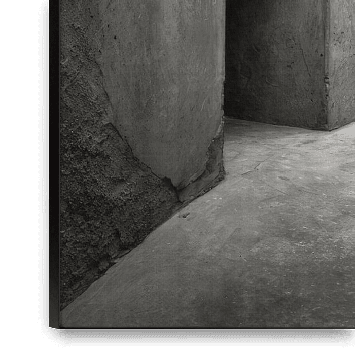 At the centre of this space is not a structure, but a resistance. The massive, untreated monolith dominates the geometry and defies any functional interpretation. It is not an entrance, not an exit, not a passageway. It is simply there. Immovable.