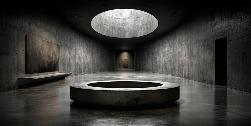 This picture does not describe a room in the classical sense, but an inner order. The central circle lies heavy and calm in the room, without function, without explanation. It is neither an object nor furniture, but a set form - a fixed point around which perception is organised.