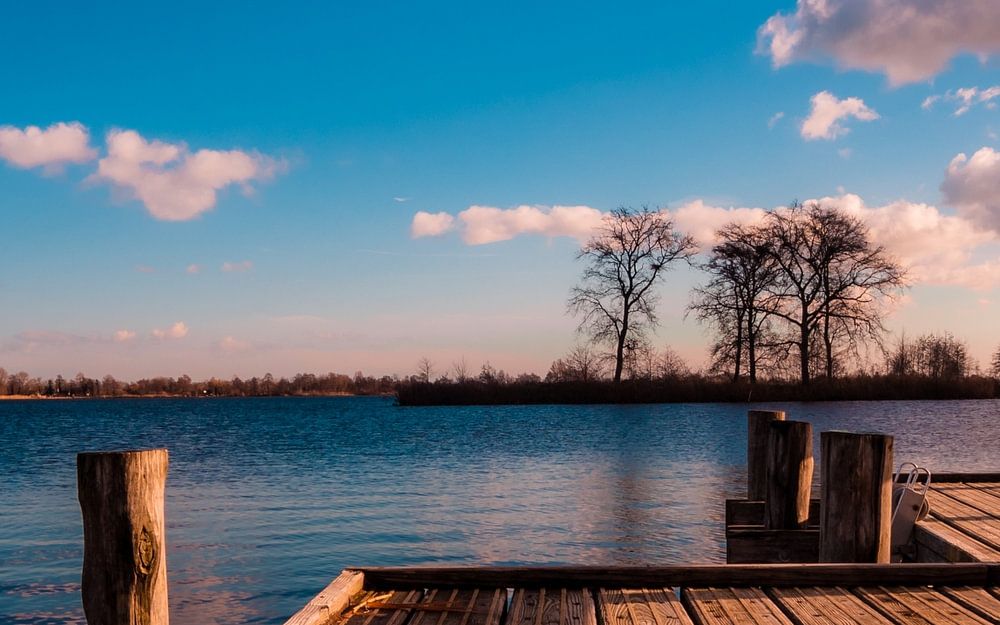 This jetty is on the Reeuwijkse plassen, near the Elfhoevenplas, South Holland, Netherlands. It was a cold winter day in January with plenty of sunshine and beautiful cloud cover. I wanted to capture the contrast between the clean lines of the jetty and the soft shapes of the clouds. The skimming light of the sun completes this photo for me.