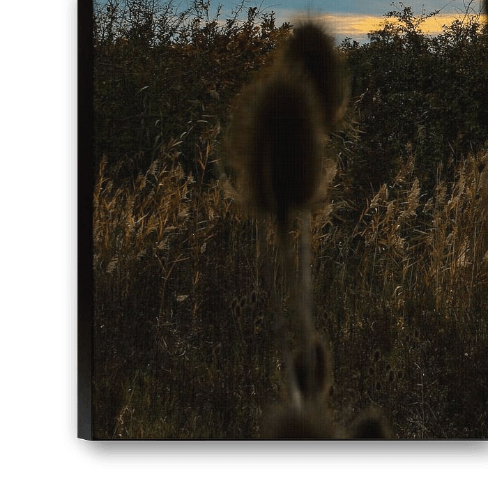 At dusk, where the sky blushes and the earth slumbers, the barren stalks stand still. They whisper the secrets of a bygone summer, silhouettes of resilience, bathed in the serene glow of evening.