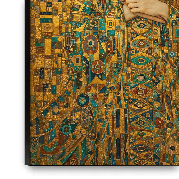 Immerse yourself in the magnificent world of Art Nouveau with this captivating portrait, which masterfully combines elegance and symbolism. The young woman, with her gentle, clear gaze, radiates a calmness that immediately touches the viewer. Her sumptuous robe resembles a jewel-encrusted mosaic, rich in complex patterns and mystical…