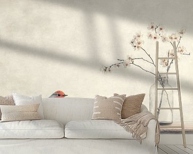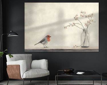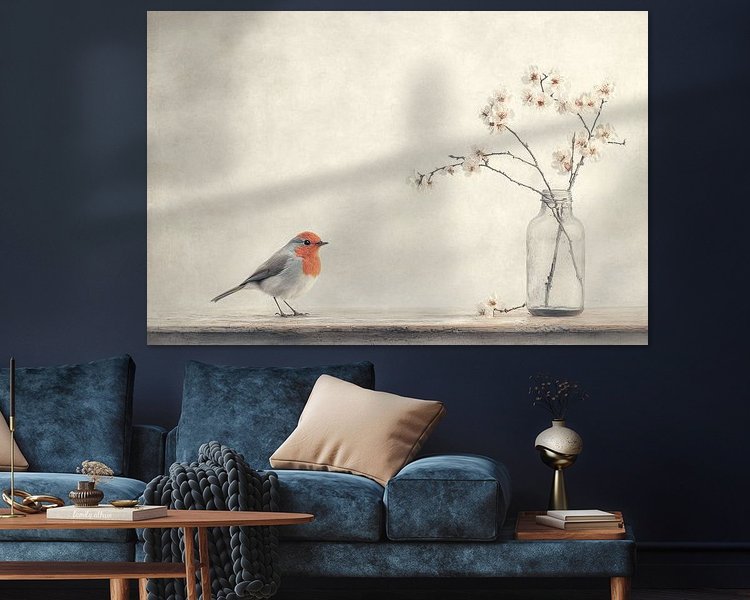Buy this flower art The robin and the blossom by Japandi Art Studio on canvas, ArtFrame, poster and wallpaper, printed on demand in high quality.