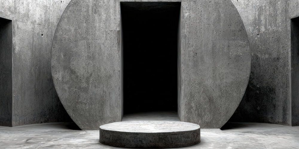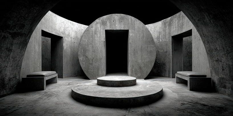 This picture does not show a passageway, but a state. The circular body in the centre does not look like a building, but like a set principle. Everything in the room is subordinate to it without approaching it. Movement ends here before it begins.