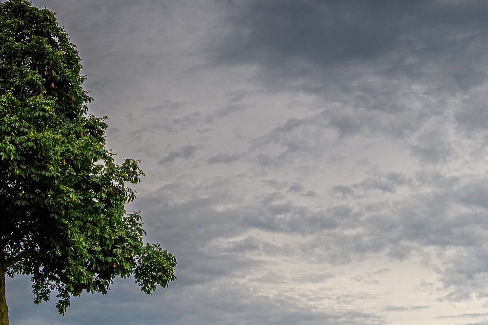 The contrast between the dark tree and the bright cloud cover form a nice interplay in this landscape photo.