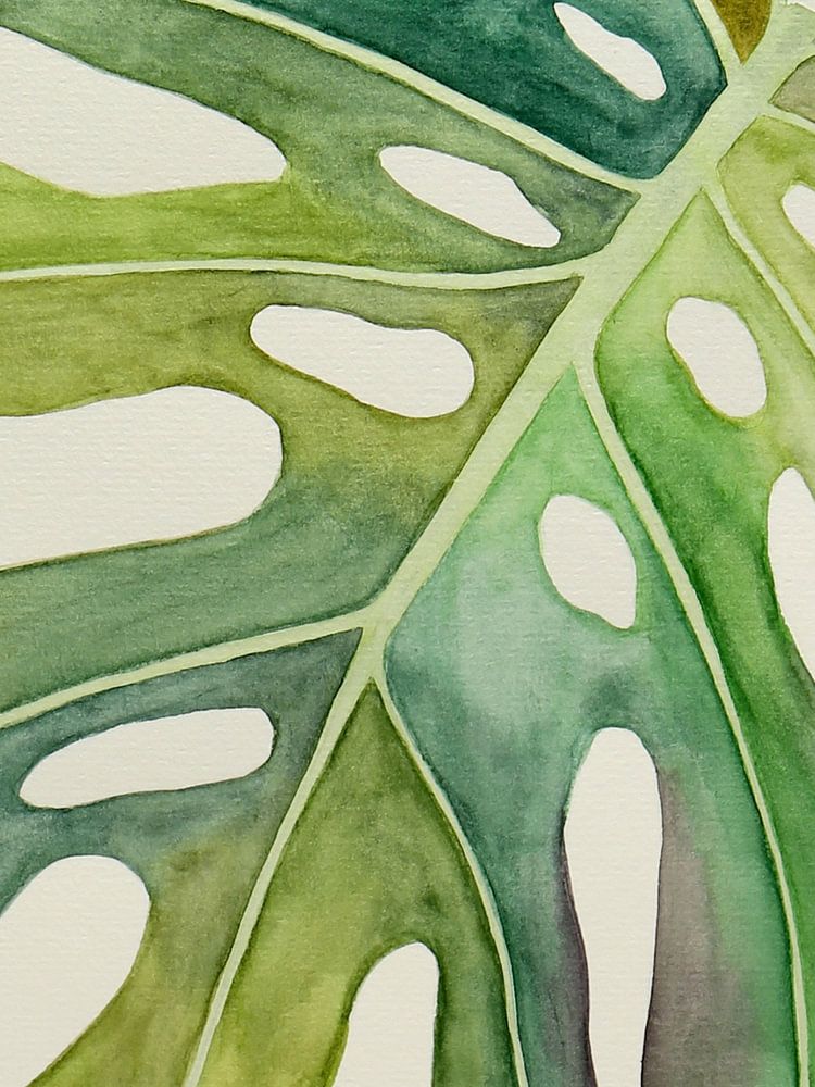 The variegated Philodendron Monstera 3 of 3 (watercolor painting flowers green houseplant nature jun by Natalie Bruns