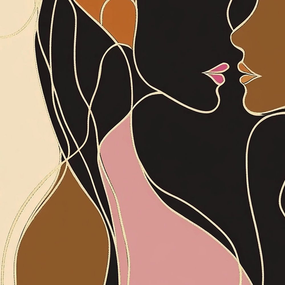 A procession of silhouettes, each with its own story, moves silently past your field of vision. They are connected without touching - like sisters, like strangers, like versions of yourself. The lines are soft, the colours earthy, but the emotion is raw.