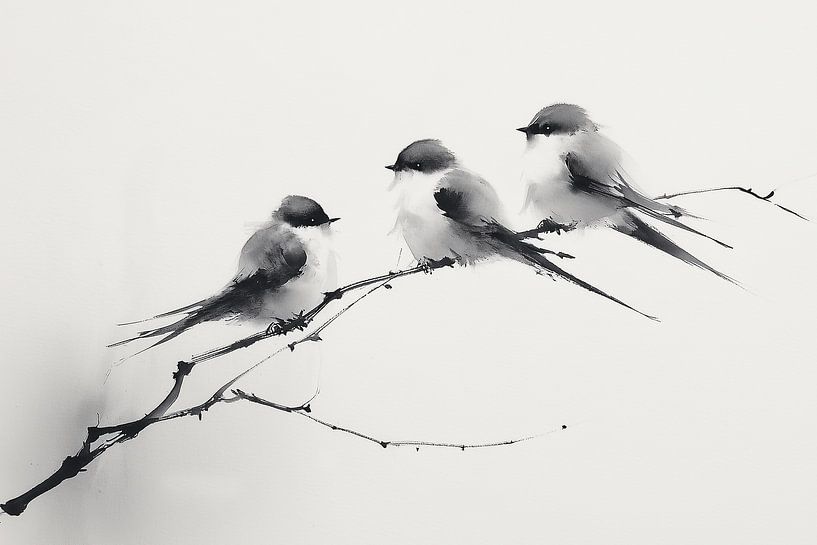 Buy this bird art Three Little Birds II by Bianca ter Riet on canvas, ArtFrame, poster and wallpaper, printed on demand in high quality.