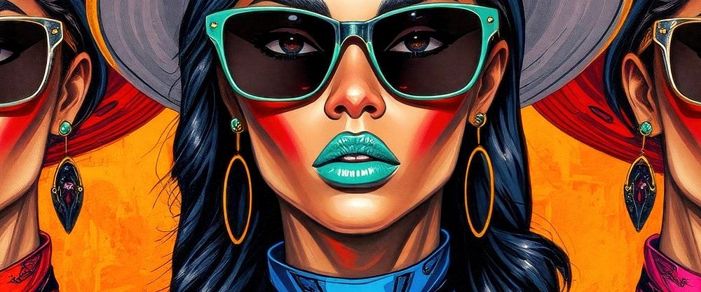 In this panoramic work, we encounter three young women who face the viewer head-on. Their gazes are direct, self-confident and penetrating - a silent dialogue that creates closeness and at the same time maintains distance. Depicted from the top of their heads to the base of their breasts, they appear like flawless doppelgangers: stylised, perfectly made up, with fashionable hats, colour-coordinated outfits and sunglasses through which their eyes nevertheless remain visible. Their appearance is like a hybrid of a digital avatar and an idealised image of beauty.
