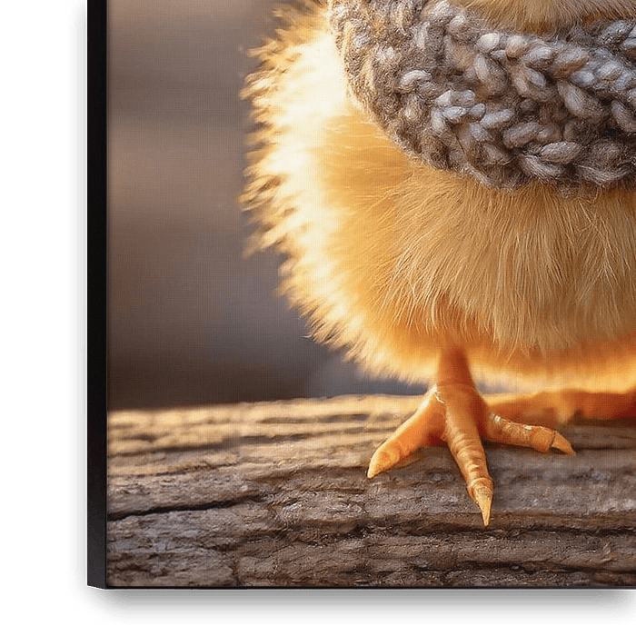 Three cute little yellow chicks, with woollen hats and scarves, on a cold winter day. The cuteness radiates from them, so sweet. The image was generated using ai.