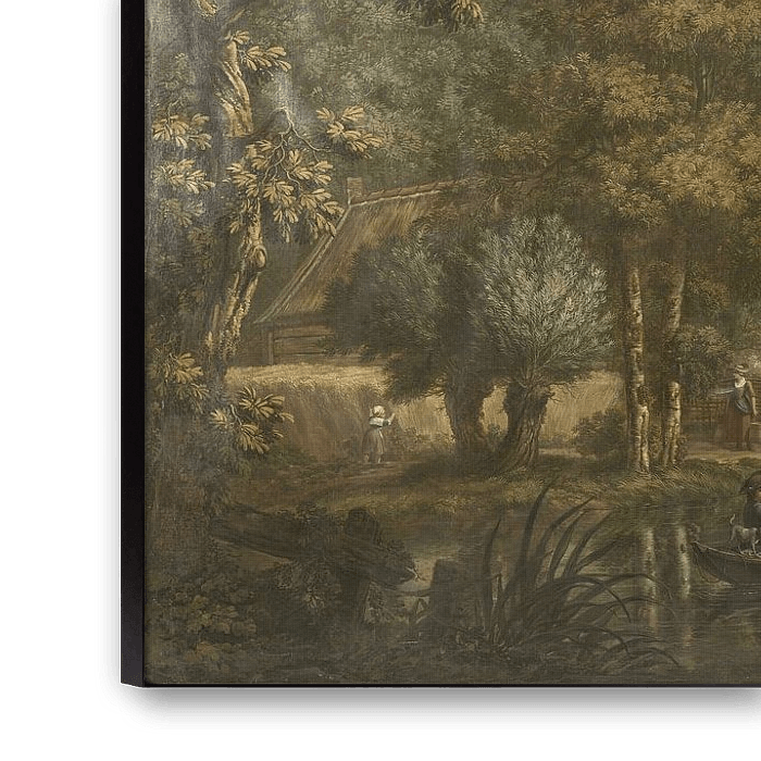 From around 1770, it became fashionable to cover rooms with painted wallpapers. With their idyllic representations, they could transform a canal room into an oasis. These three paintings, together with the parts now missing, showed a continuous Dutch landscape, interrupted only by panelling, windows and doors. They were painted for the room at 22 Nieuwe Doelenstraat in Amsterdam.