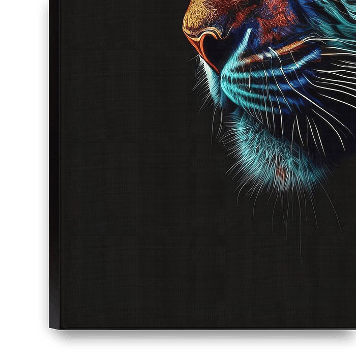 Buy this portrait Tiger with black background by Rene Ladenius Digital Art on canvas, ArtFrame, poster and wallpaper, printed on demand in high quality.