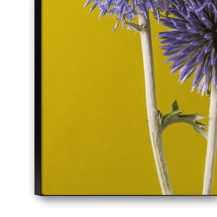 "Together: A portrait of two Bull Thistles" is a macro photograph of two beautiful bulbs of the Bull Thistle (Echinops). These two bulbs differ not only in size but also in the stages they are in. The left Thistle bulb (as seen from the viewer) is almost completely in bloom and looks soft and "caressable". This bulb is also a lot bigger than the one on the right. The bulb on the right is smaller and only has flowers at the top. Most of this bulb does not look as soft as the left bulb. They look like spikes protruding from the bulb. These are still the budding flowers and in a few days this bulb, like the others, will be a flowering bulb. I liked capturing just this difference. The fact that the leaves also reach out like a hand to the other bulb gives the image something sweet, just like a couple in love.