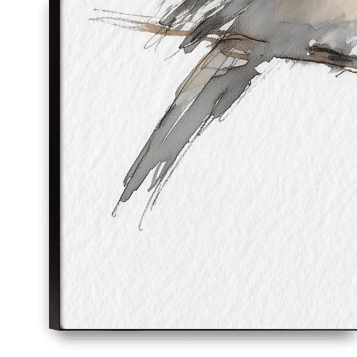 Three fluffy birds sit close together on a thin branch, painted in soft watercolour tones of beige, warm brown and cool grey. Their round bodies almost touch each other, creating a sense of connection and warmth. The background is bright white, with visible paper texture, which enhances the fragility and lightness of the…