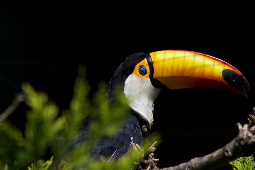 Buy this bird art Toucan Portrait with Vibrant Yellow Bill on Branch by Alex Alcalde on canvas, ArtFrame, poster and wallpaper, printed on demand in high quality.