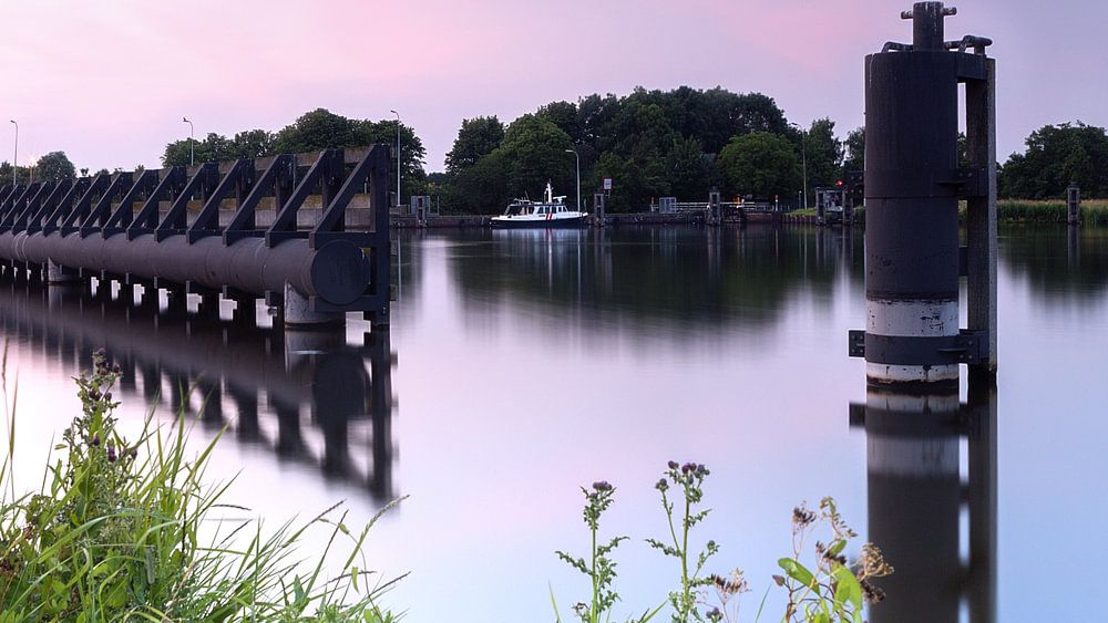 The Oostersluis is the major shelter lock between the Van Starkenborgh canal and the Eemskanaal, both CEMT class Va. The lock is on the east side of the city of Groningen, in the watershed between the Waterwolf and the Eems Canal. (Source: wikipedia). The picture was taken during sunset from the dam of the street The Oostersluis is the major shelter between the Van Starkenborgh canal and the Eemskanaal, both CEMT class Va. The lock is on the east side of the city of Groningen, in the watershed between the Waterwolf and the Eem Canal. (Source: wikipedia). The picture was taken during sunset from the quay of Damsterdiep Street
