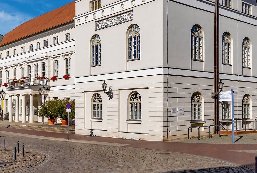 The town hall of the Hanseatic city of Wismar is a classicist building that was erected on the north side of the market square between 1817 and 1819. Wismar's market square is one of the largest in Germany with an area of around 10,000 square metres. It is the largest market square in northern Germany.