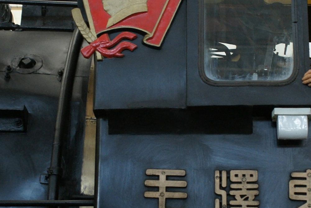 Photo 4 from the series: personal train de Oosten Wind (Dong Feng) of Chairman Mao Zedong as it can be seen in the National Train Museum of China in North Beijing. Picture 4 is a close up of the details of the cab and driver.