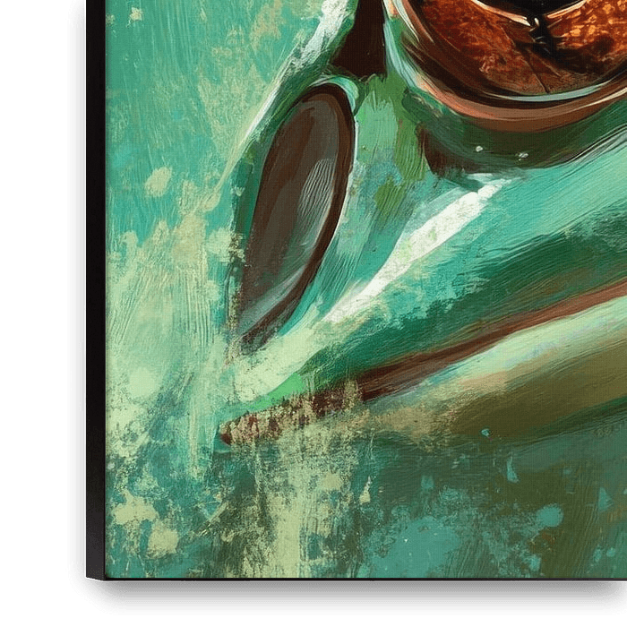 A fascinating creature comes into the world with large, glowing eyes that shimmer in a warm amber colour. The soft, emerald-green skin looks lively and inviting, while the shimmering light in the background creates an enchanting atmosphere. This amphibious protagonist radiates a mysterious, almost magical attraction that casts a spell…