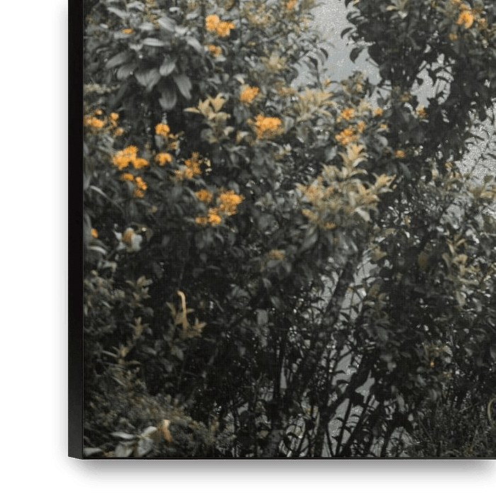This enchanting composition shows a whimsical tree rising from a misty mountain forest, framed by lush shrubs with subtly contrasting yellow flowers. The mist softens the contours of the landscape and brings a dreamy, almost fairy-tale atmosphere. The combination of cool tones and warm accents gives the image depth and balance. A…