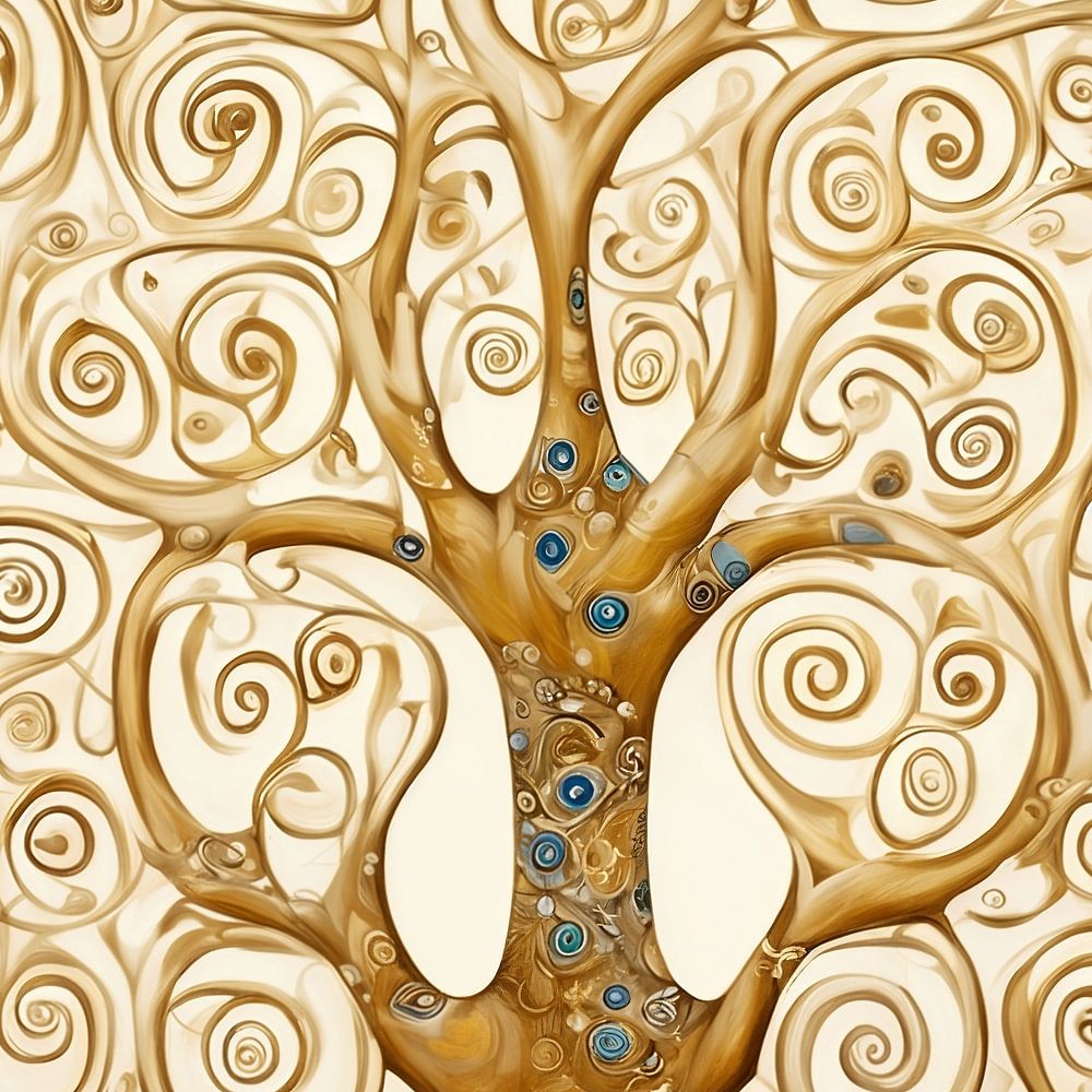 An Art Nouveau Tree of Life painting inspired by Gustav Klimt.