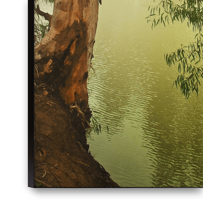 Buy the photo Tree over the water of the Jordan River. slow water, drooping branches, a symbol of baptism by Michael Semenov on canvas, ArtFrame, poster and wallpaper, printed on demand in high quality.