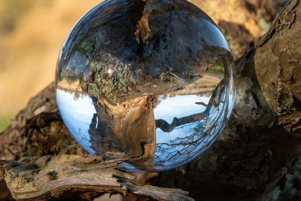 One day one tried out the glass sphere. It gives a special effect because the object inside the sphere turns around. In this case, you only see the subject through the sphere. I had placed the sphere on a tree trunk and then took photos's. nice touch was that the daylight did help me so the subject was well exposed.