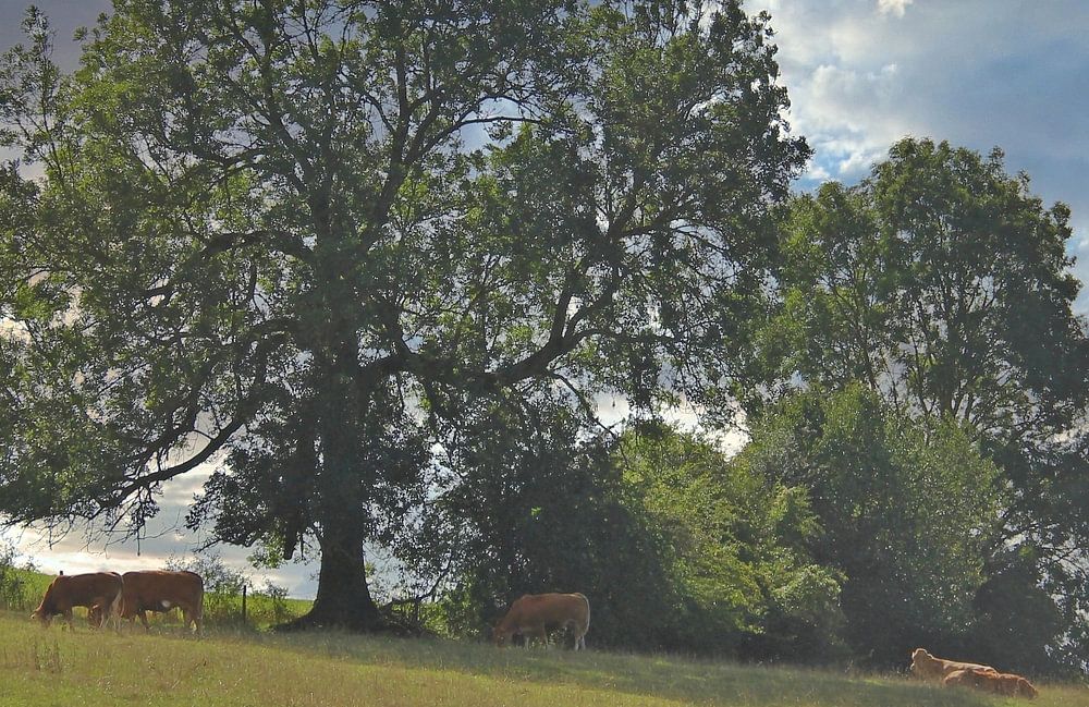 Trees and cows in the Limburg landscape with a beautiful cloudscape.
