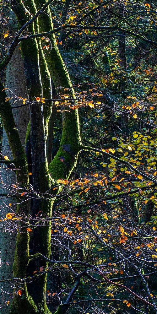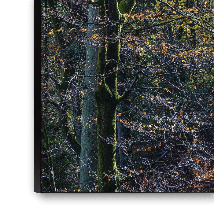 Of course, the three parts of this triptych can also be ordered separately but together they form a beautiful picture of autumn in the forest. Mossy trees, dark woods, colourful leaves and sunlight reflecting off the leaves.