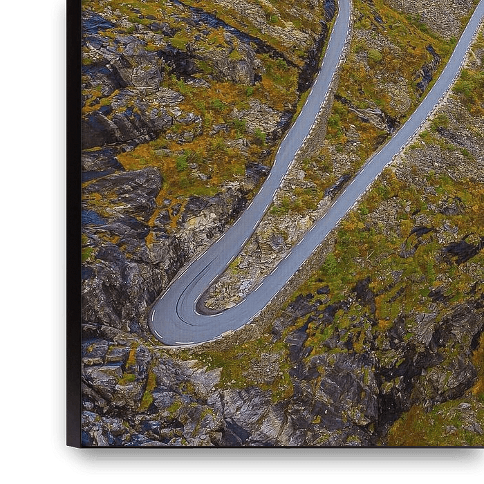 A wide view of the famous Trollstigen road, a winding mountain road in the municipality of Rauma, located in Møre og Romsdal county, Norway.