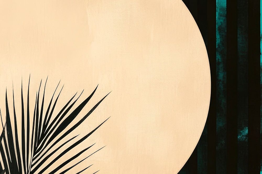 A harmonious interplay of soft earth tones and vibrant colours creates a relaxing tropical atmosphere. The overgrown silhouettes and the large, radiant moon lend the room a calm elegance. Ideal for the living room, it creates an inviting environment that encourages you to linger and dream.