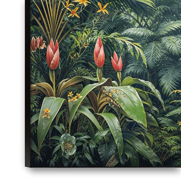 Buy this landscape artwork Tropical plants and flowers in the rainforest by May on canvas, ArtFrame, poster and wallpaper, printed on demand in high quality.