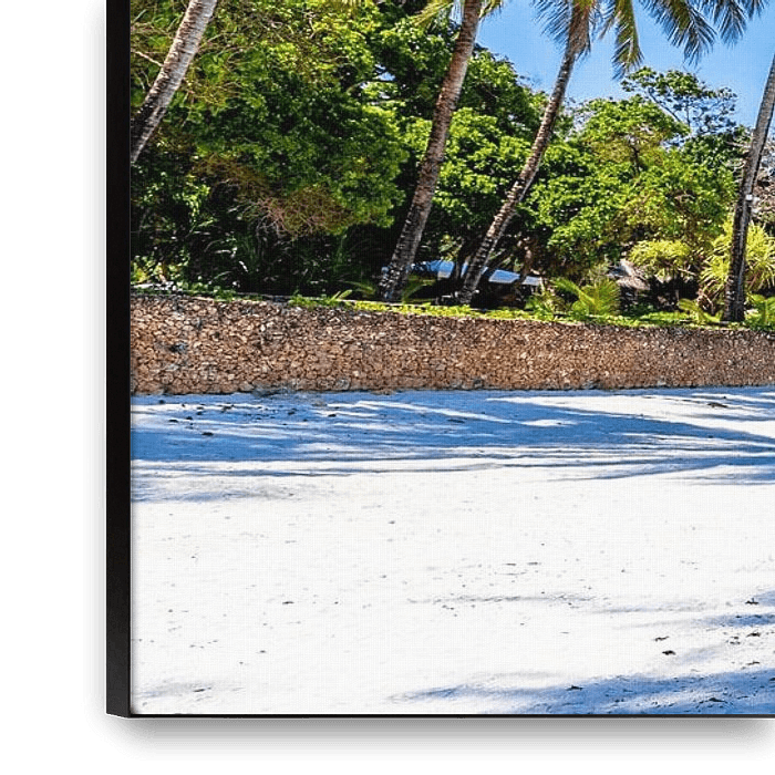 Buy the photo Tropical white beach with azure sea and blue sky and palm trees by Steven World Traveller on canvas, ArtFrame, poster and wallpaper, printed on demand in high quality.