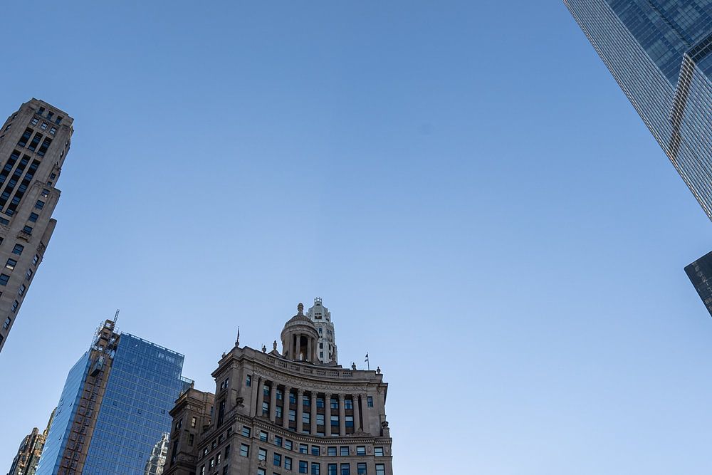 Buy the photo Trump tower in Chicago and other buildings from the bridge by Eric van Nieuwland on canvas, ArtFrame, poster and wallpaper, printed on demand in high quality.