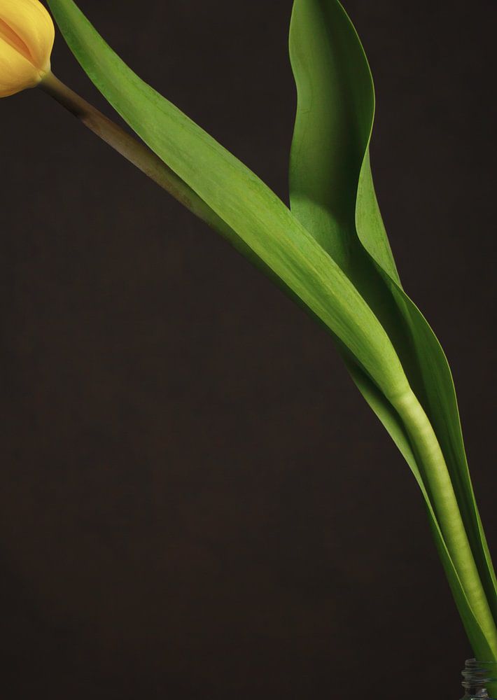 Blue, black, green and yellow in a minimalist image. The flower reaches for the light, the water feeds it, and the background provides the contrast between dark and light. To me, this photograph exudes sheer tranquility.
