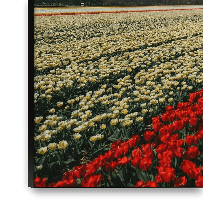 Buy the photo Tulip field at sunset by Yorick Leusink on canvas, ArtFrame, poster and wallpaper, printed on demand in high quality.