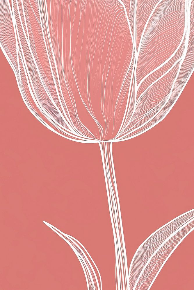 A single, delicate tulip leaf in soft pink, outlined with white lines. Abstract and minimalist tulip rendered on a calm, plain background. The composition is simple yet elegant, paying full attention to the shape and subtle beauty of the flower. No superfluous details or shadows - pure minimalism in its most poetic form. Perfect for a serene atmosphere in bedroom, study or modern living space.