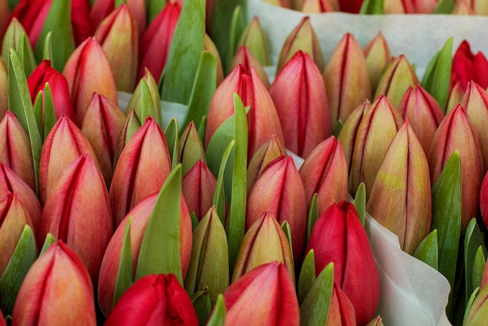 Tulips on the market in paper bags. Spring can start right away in your home. You can hardly get more cheerful than flowers in your home. On my way to the weekly market, I saw this stall with flowers and the tulips in particular stood out. The print exudes cheerfulness, simplicity and tranquillity and it makes you feel like going outside.