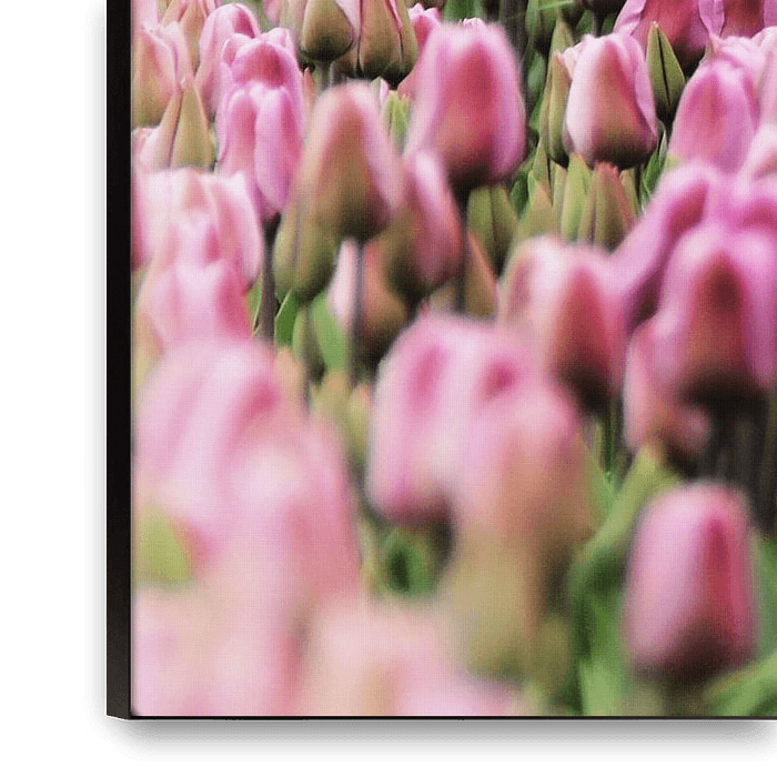 De lente proef je bij het zien van dit prachtige tulpen veld. In lange rijen staan deze tulpen te pronken en wiegen zachtjes heen en weer door de wind. Wachtend op een warm zonnetje zodat ze hun hartje kunnen laten zien. De lente is in aantocht...