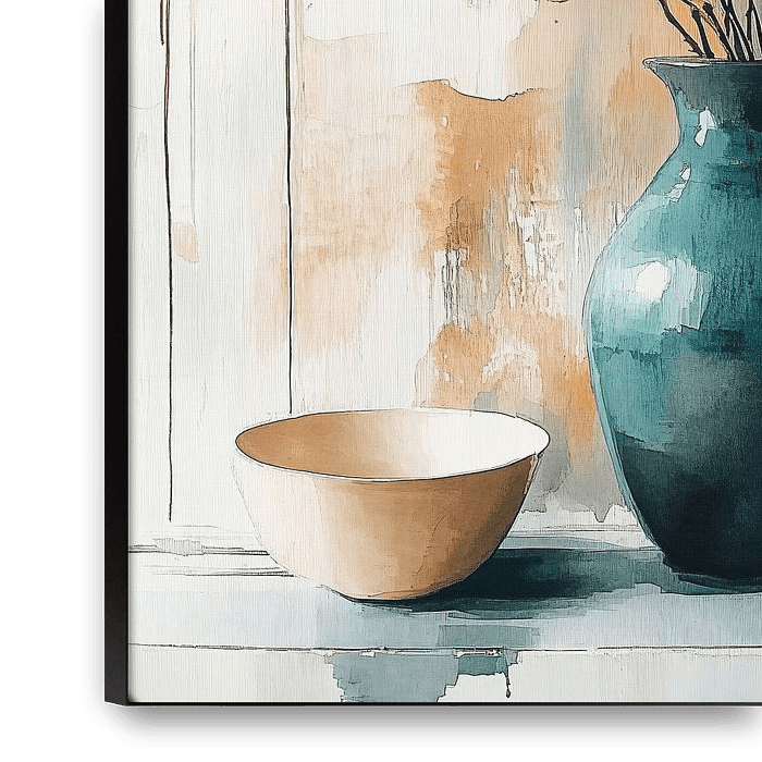 Buy this still life Turquoise vase in watercolor no.1 by Studio BB on canvas, ArtFrame, poster and wallpaper, printed on demand in high quality