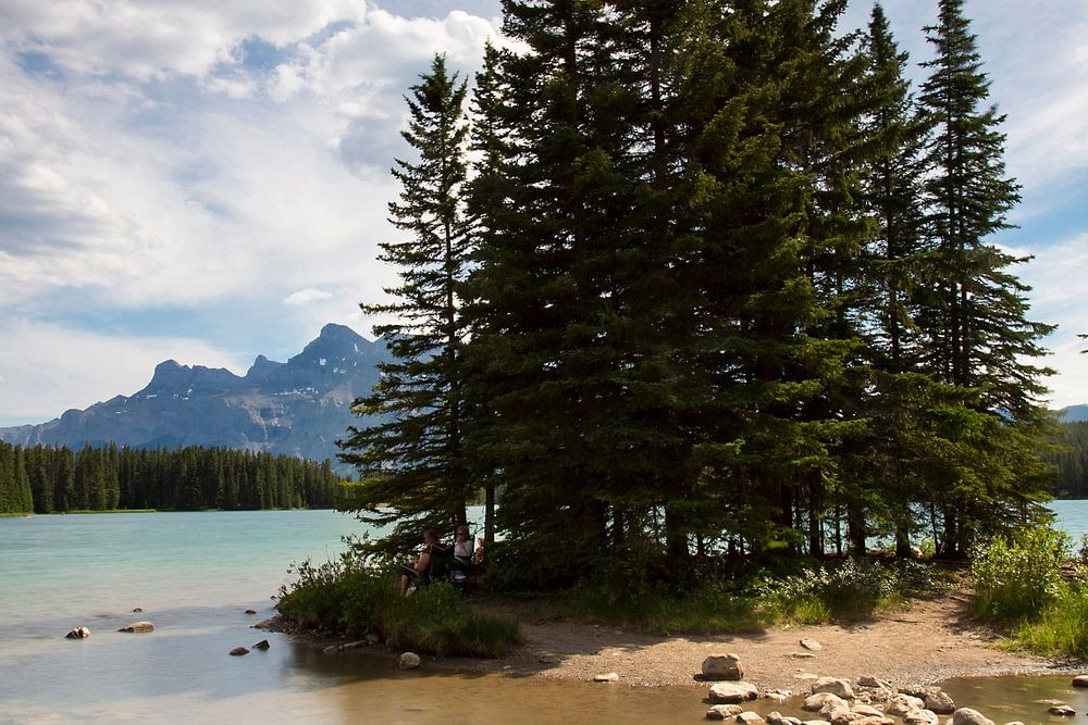 A fairytale beautiful lake near Banff is the Two Jack Lake. The lake lies on Lake Minnewanka Scenic drive, a 24 km long route through the beautiful area east of Banff. It is much quieter here than in Banff itself and just as beautiful.