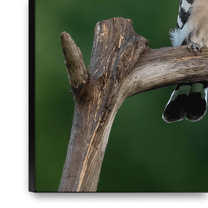 Buy this landscape artwork Two hoopoes on branch with green background by Paula Ketz on canvas, ArtFrame, poster and wallpaper, printed on demand in high quality.