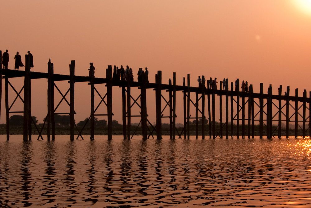 In Mandalay Myanmar is the U Bein Bridge, the world's longest teak footbridge 1,200 m bridge over the Taungthmanmeer was built around 1870 and is named after the mayor who had it built.