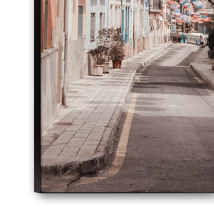 Buy the photo Umbrella street Alicante by Shelena van de Voorde on canvas, ArtFrame, poster and wallpaper, printed on demand in high quality.