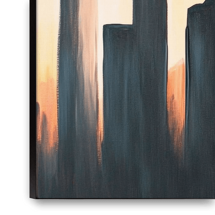 The powerful silhouettes of the skyscrapers seem to fight against a warm, spectacular sunset, while soft orange tones envelop the scenery. This contemporary composition gives the room a modern flair and is perfect for a living room or a creative office, where it stimulates inspiring conversations.