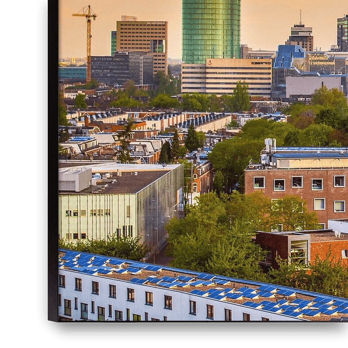 Shot from the Water Tower in high tombs during the sunrise of a beautiful day. The station area of Utrecht.